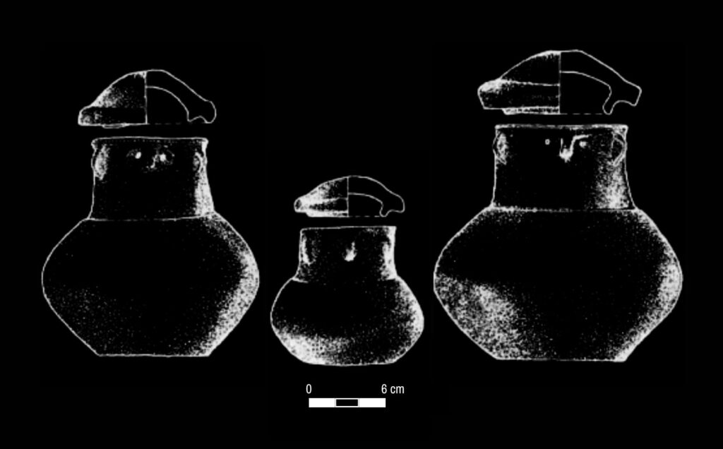 Ryc. 1: Popielnice twarzowe z grobu nr 2, stanowisko Rumia-Janowo (Markowiec).Rysunek według: Fudziński, M. 2001.